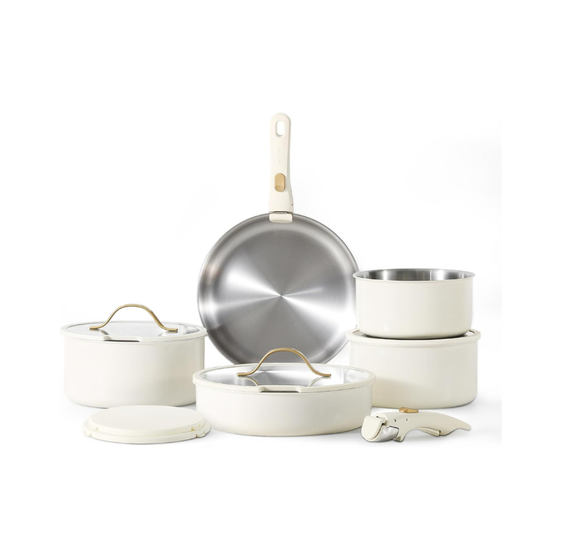 12pcs Pots and Pans Set, Stainless Steel Cookware Set Detachable Handle