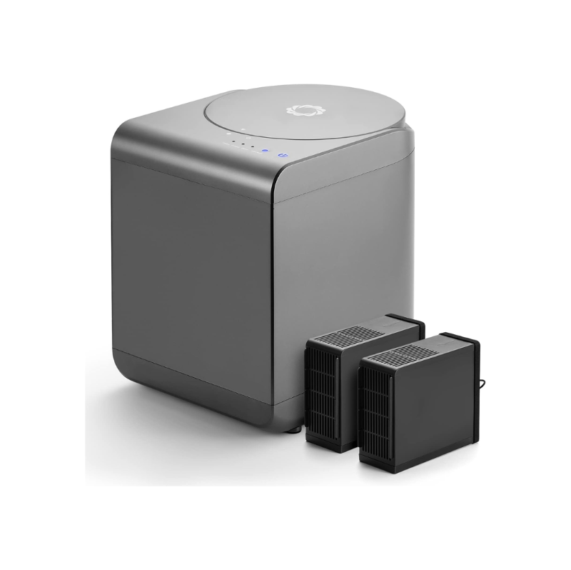 Food composters transform food scraps and kitchen waste into powder by drying it out and grinding it up. You can use this powder as fertilizer for your plants or throw it away to reduce the volume and odour of your trash.