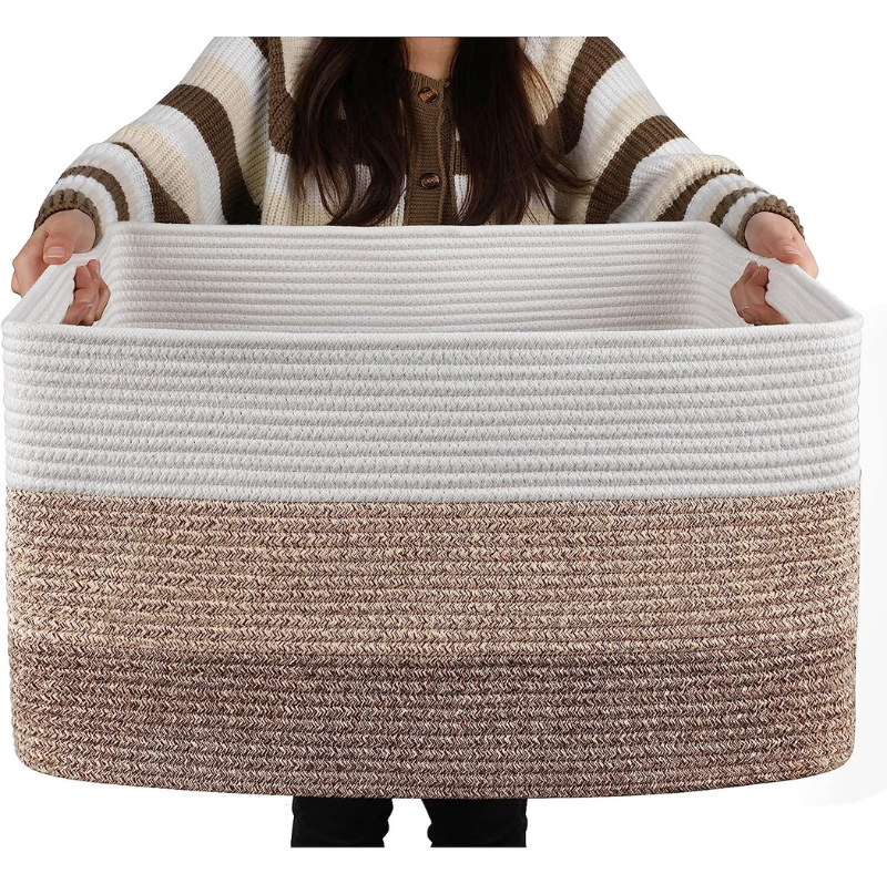 Decorative Blanket Storage for Living Room:This rectangular blanket basket is more stable and easier to restore its sahpe after you receive the package. The 21.7’’ x 16.9’’ x 11.8’’ large storage basket can also used to store blankets, pillows, cushions, toys, clothes and towels.