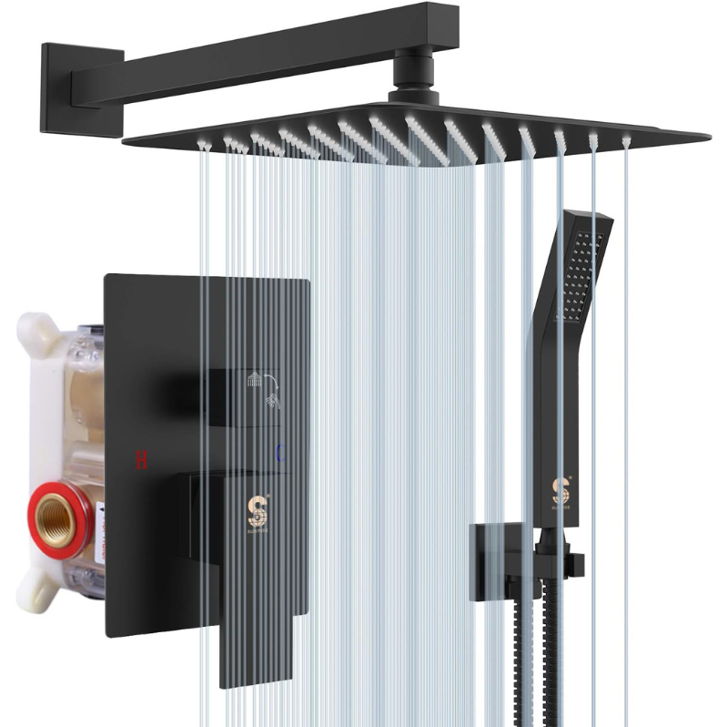 Modern Shower Design: With a knob and a handle, you have full control of this shower system.Just a simple turning, then can easily switch between the rain shower and hand shower. Single lever handle for ease of temperature and flow control.