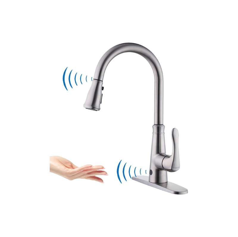 2.DUAL MOTION SENSOR FUNCTION Motion Infrared Sensor Delivers Exceptional Hands-Free Touchless Convenience. Pull the faucet head down to automatically eject and release to shut off the water as soon as the head is retracted to its original position